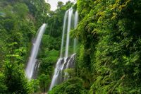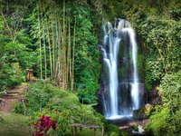 Sekumpul Cascada- Es una de las atracciones naturales más bellas y pintorescas de Bali. La cascada es en realidad un grupo de seis a siete cascadas estrechas que forman la pieza central, en un exuberante valle boscoso de bambú verde.