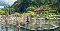 Tirta Gangga- Ubicado en el pueblo de Ababi, el jardín de agua real fue construido en 1946 durante el reinado del último raja de Karangasem, Anak Agung Anglurah Ketut Karangasem (1887 - 1966). Propiedad de la familia real de la región cuenta con jardines tropicales, piscinas para niños, estanques de peces y fuentes. Rodeados de césped bien cortado adornados con estatuas ornamentales que son todo un lujo. El complejo es un refugio fresco en las tierras altas del este, ubicado en la ladera sureste de la montaña más alta de la isla, el Monte Agung.