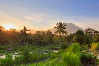 During the 18th and 19th centuries, it was the most powerful kingdom in all of Bali, with an extension of 839.54 km², known for its impressive landscape formed by the lava flows of Gunung Agung the sacred mountain of Bali. The beautiful terraced rice fields are located on the lower slopes of the Southeast; Clove and coffee plantations are further north.